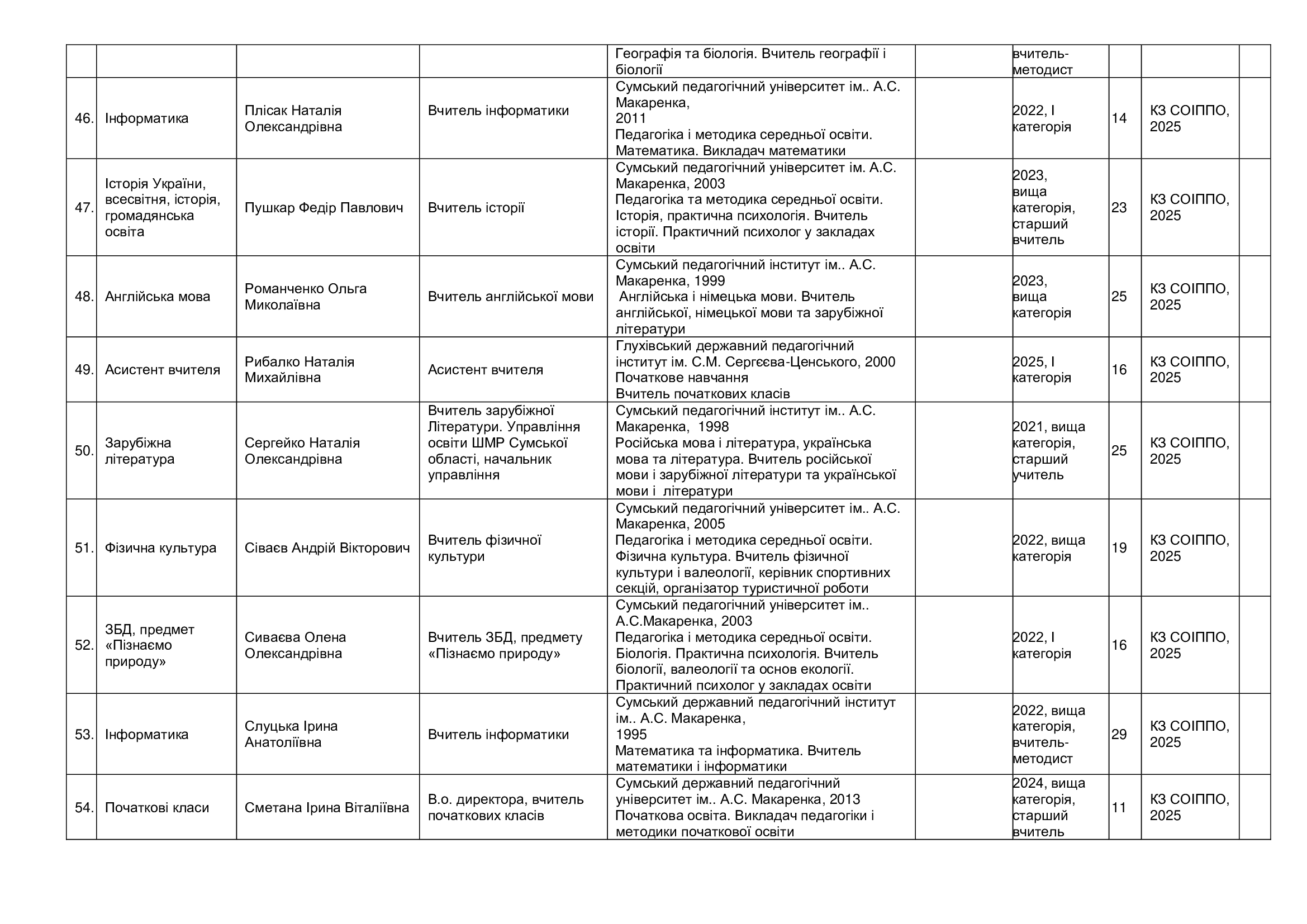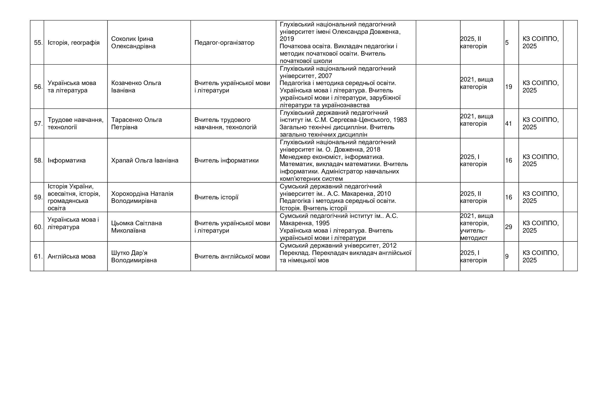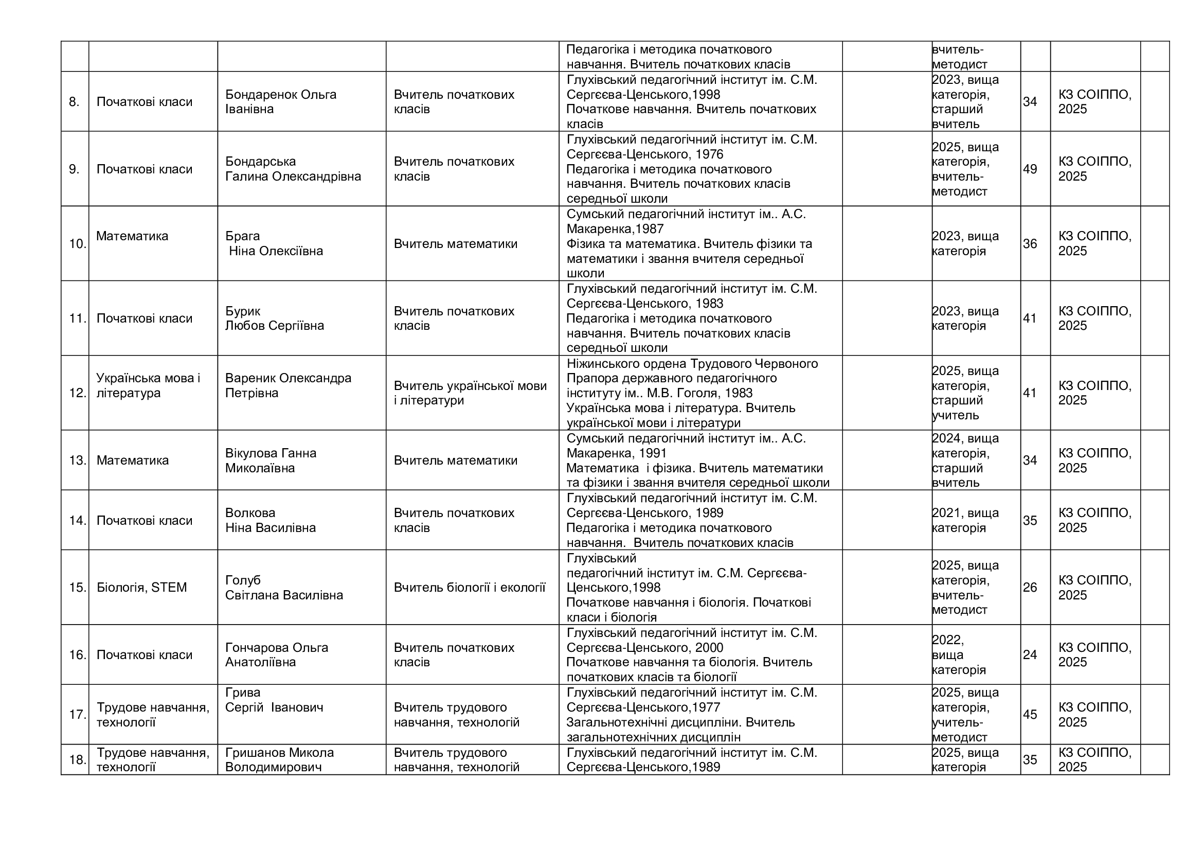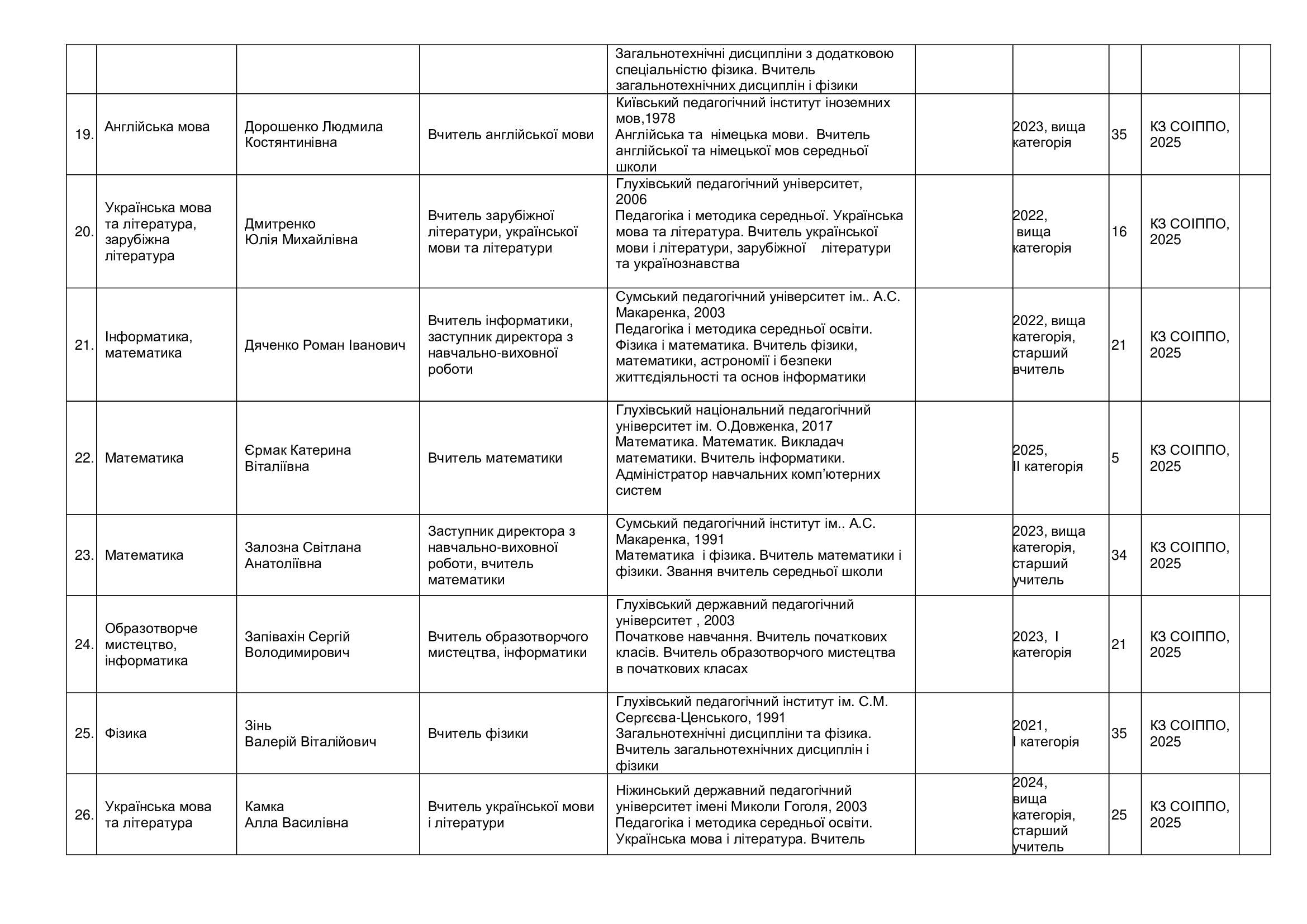Кадровий склад закладу