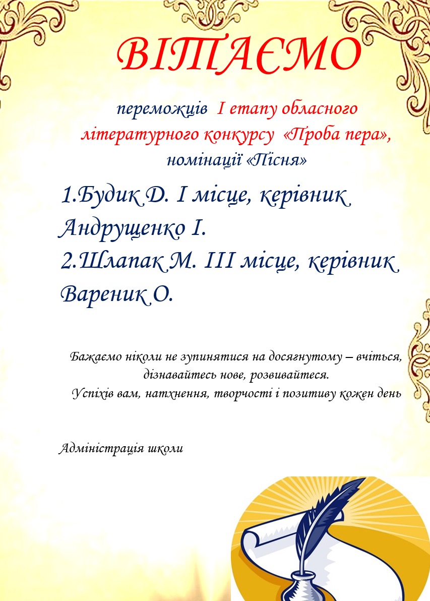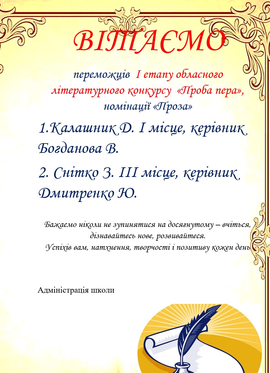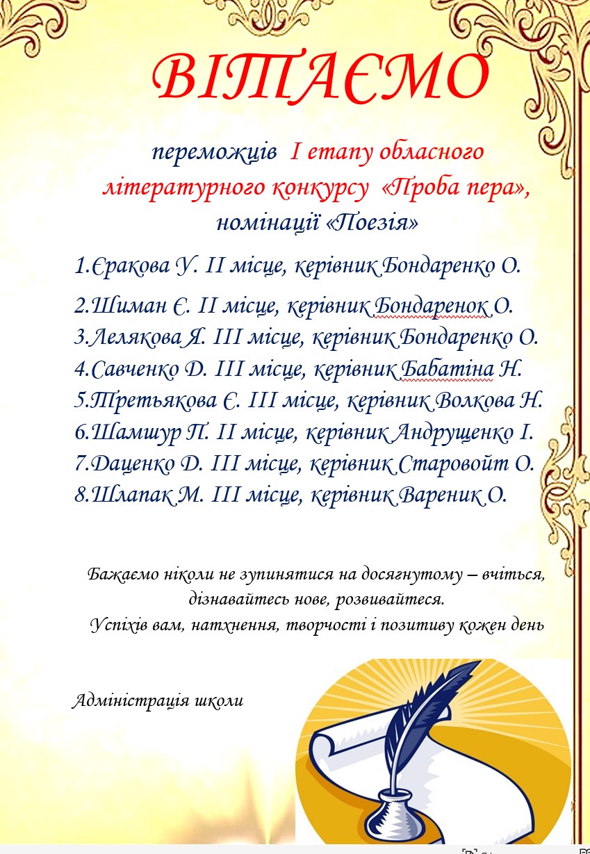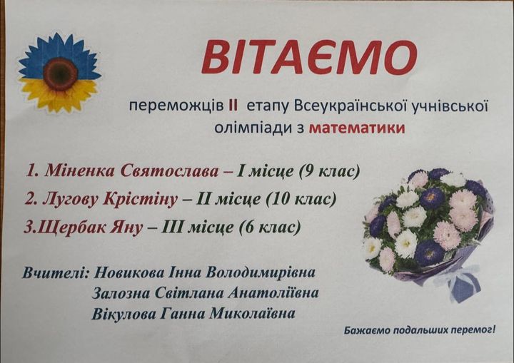 Пишаємося вашими досягненнями й щиро бажаємо нових звершень на наступних етапах конкурсу.