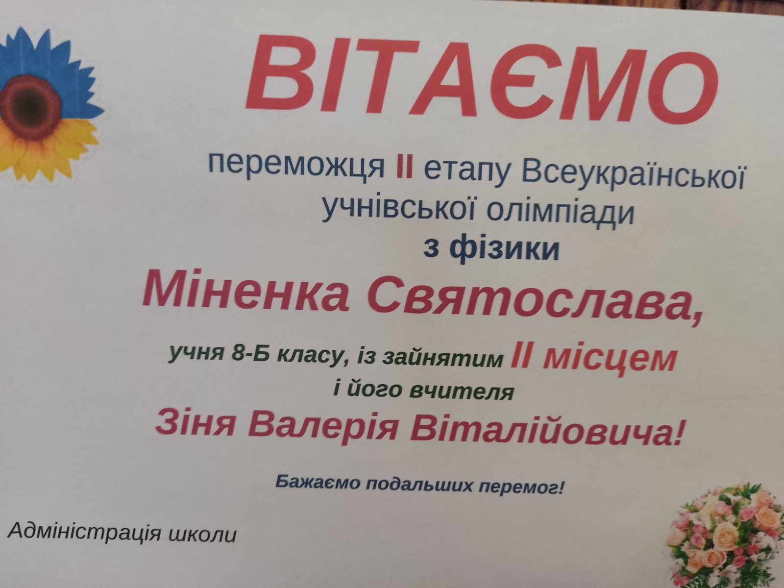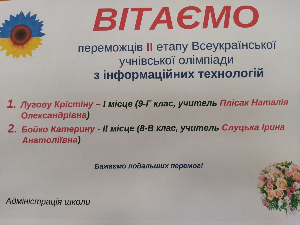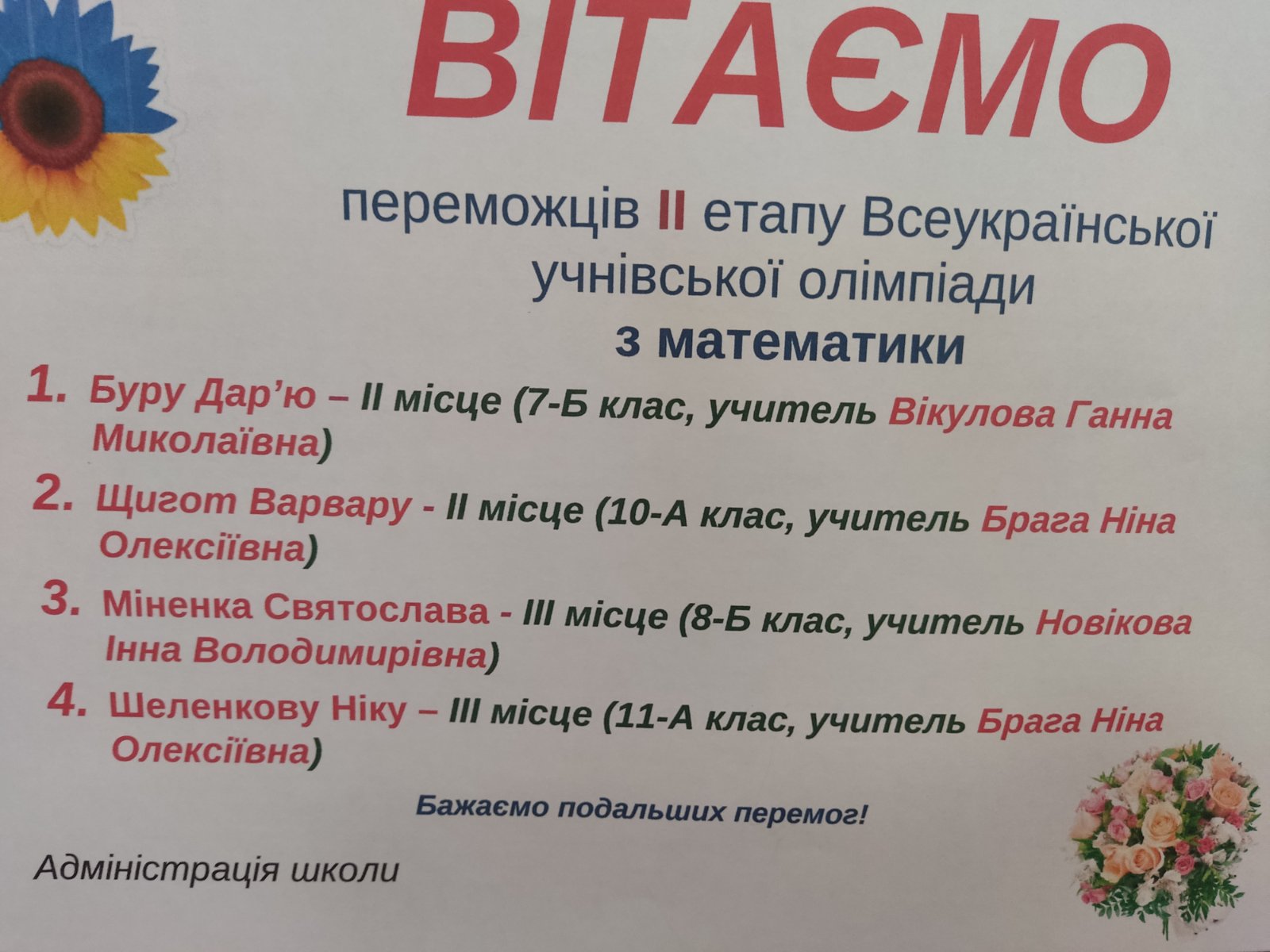 Вітаємо ученицю 8-В класу Тиченко вікторію та її наставника, вчителя математики Кочубей Світлану Григорівну! Вікторія здобула ІІ місце на ІІІ Всеукраїнському конкурсі творчих робіт учнів 5-11 класів "Геометрія навколо нас".