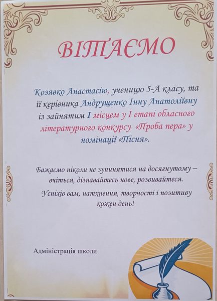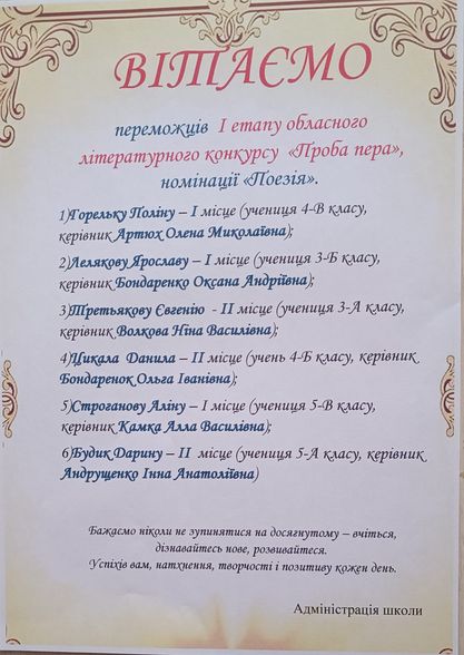 Шкільна родина щиро вітає збірну команду учнів 5-6 класів Шосткинської спеціалізованої школи І-ІІІ ступенів #1 із зайнятим ІІ місцем