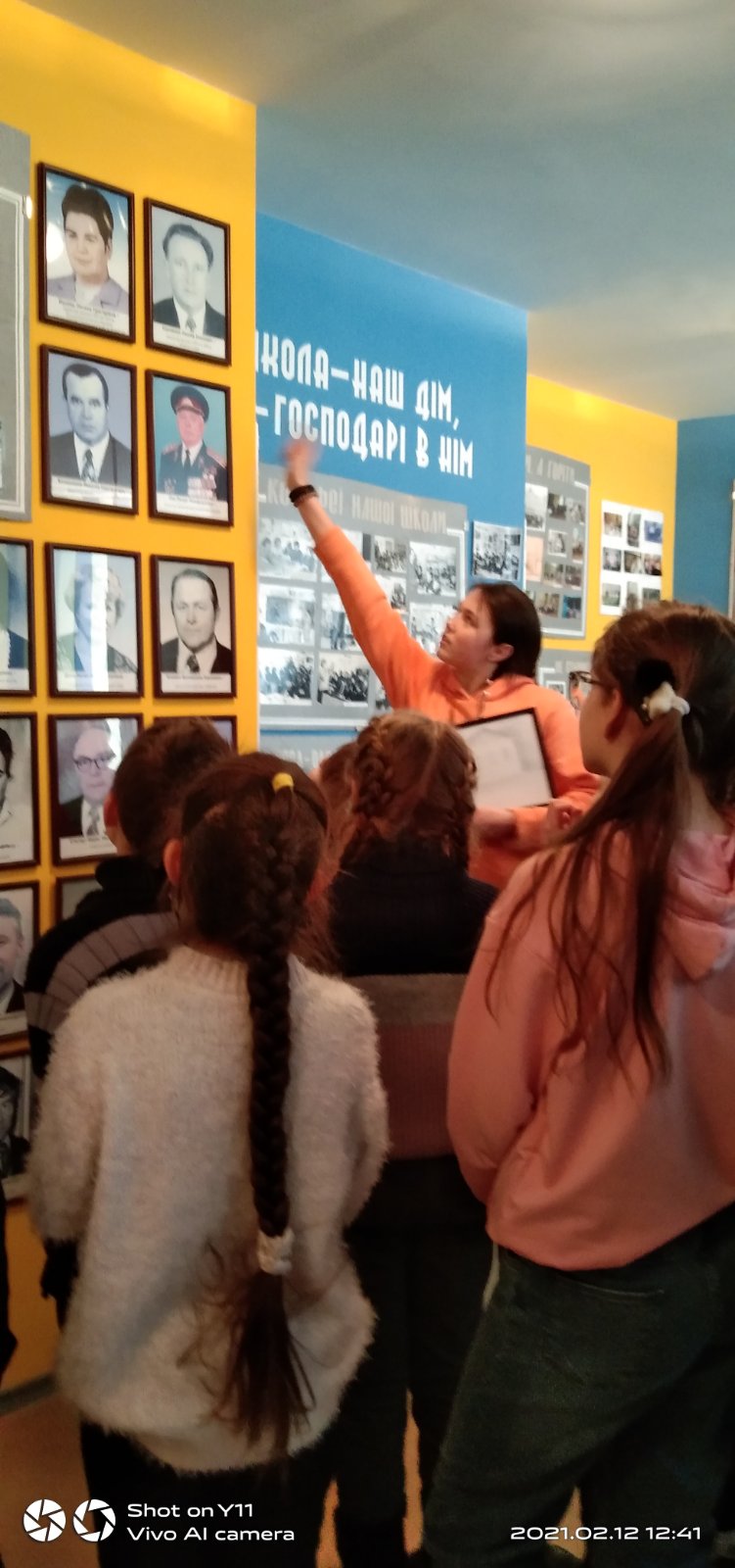 Здобувачі освіти 8- Б класу ШСШ І- ІІ ступенів №1 активно долучилися до вивчення матеріалів, публікацій, експонатів, фотоматеріалів музею, займаються пошуковою роботою з метою поповнення фонду музею. Активно і натхненно працюють Белявський Максим, Коршунов Михайло, Крапивний Ілля, Крекотень Дарина, Новікова Дар`я, Петрунькіна Софія, Старченко Анастасія. Опрацювавши матеріали, збережені в музеї, учні самостійно проводять екскурсії. Так, за останні два тижні екскурсоводи провели дві екскурсії для п`ятикласників. Вони ознайомили дітей з матеріалами тематичних стендів, розповіли історію рідної школи, згадали видатних педагогів, що стояли у витоків її існування, а також розповіли про далеке історичне минуле нашого краю; про м. Шостку у роки Другої світової війни, про діяльність партизанських загонів, про героїчний шлях 6- ої Гвардійської дивізії, що звільнила місто від нацистів та про нашого славетного земляка І. М. Кожедуба.