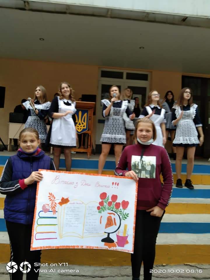 День учителя! Свято глибокоi вдячностi людства люблячому учительскому серцю, свiтлому розуму, глибокiй мудростi. I сьогоднi зранку на подвiр'i ШСШ І-ІІІ ступенiв №1 гучно звучить музика, лунають пiснi та слова подяки "сiячам доброго, мудрого, вiчного". Зi святковою концертною програмою вiтали адмiнiстрацiю школи, педагогiчний колектив I. Климова та здобувачi освiти 10- 11 класiв. "Спасибi, вчителю, за все..."