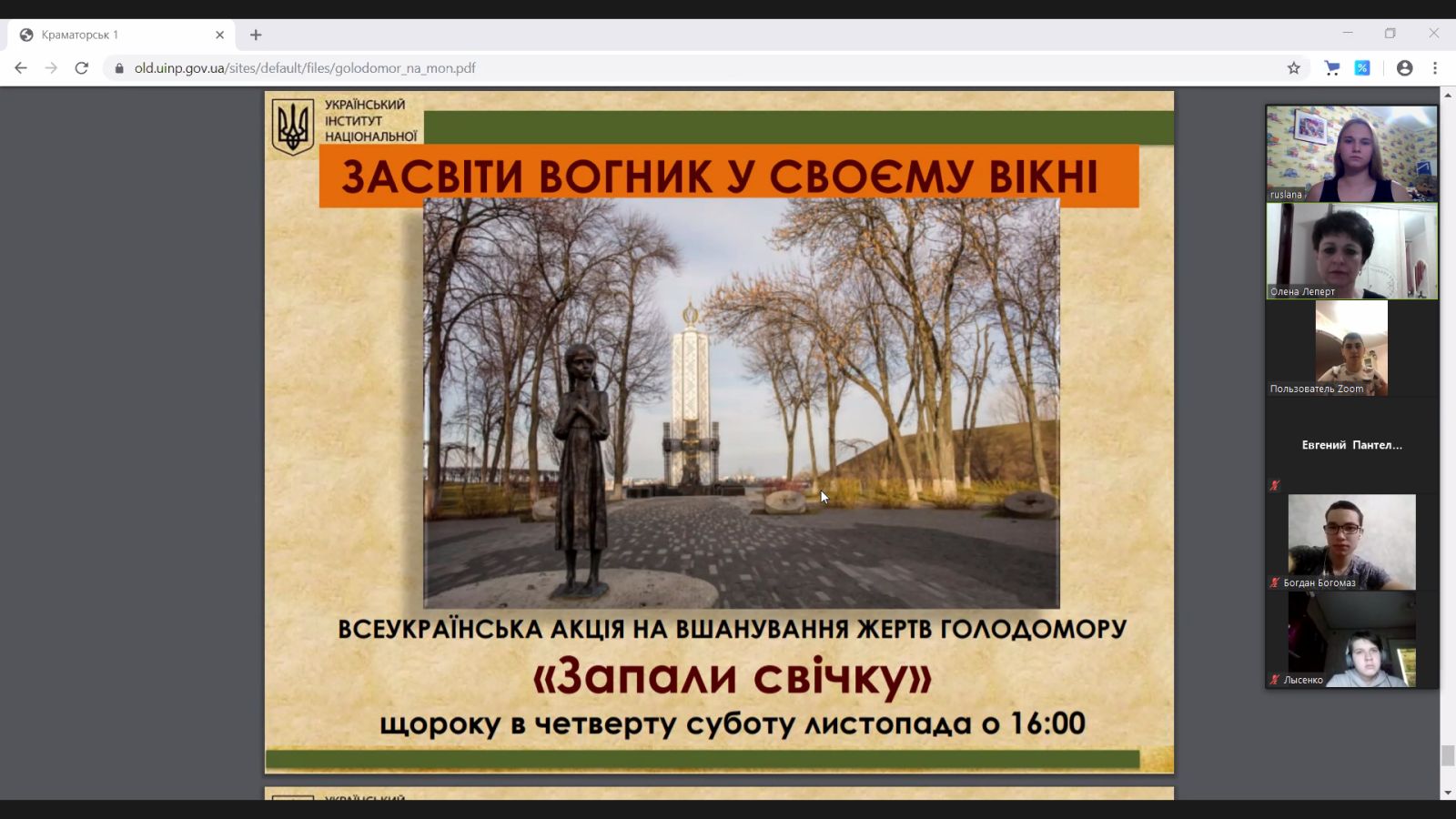 28 листопада 2020 року, у четверту суботу місяця Україна вшановує День пам’яті голодоморів.