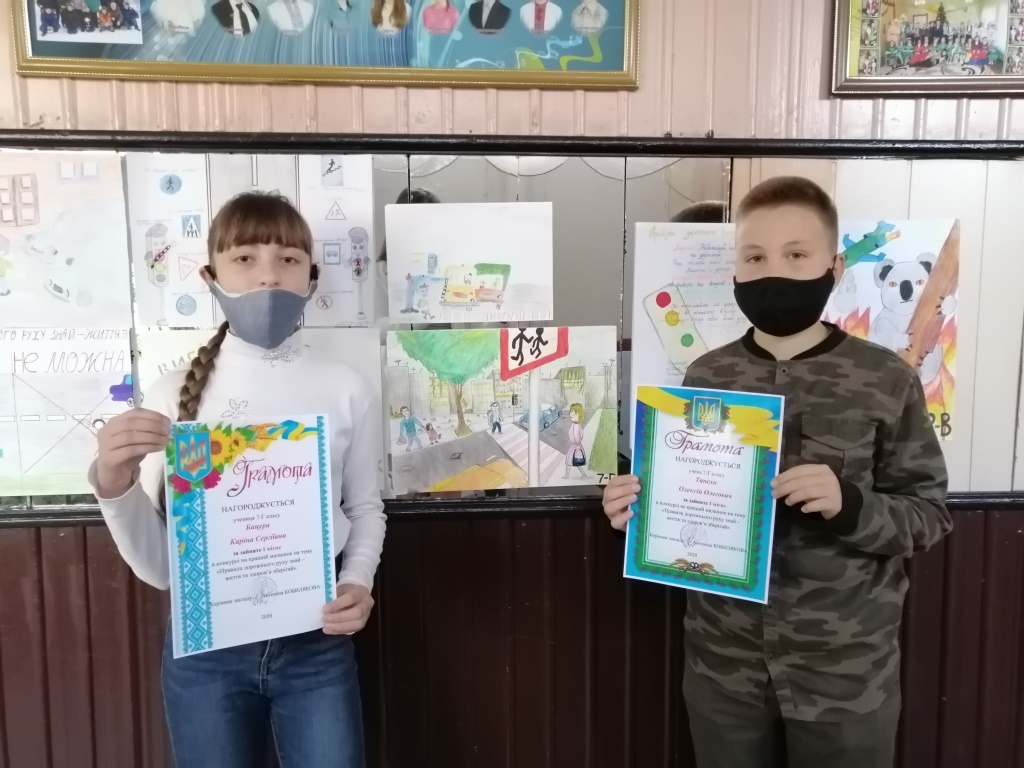 У рамках Тижня знань з основ безпеки життєдіяльності відбувся конкурс на кращий малюнок на тему "Правила дорожнього руху знай-життя та здоров'я зберігай" та на краще фото на тему"Безпечна країна".