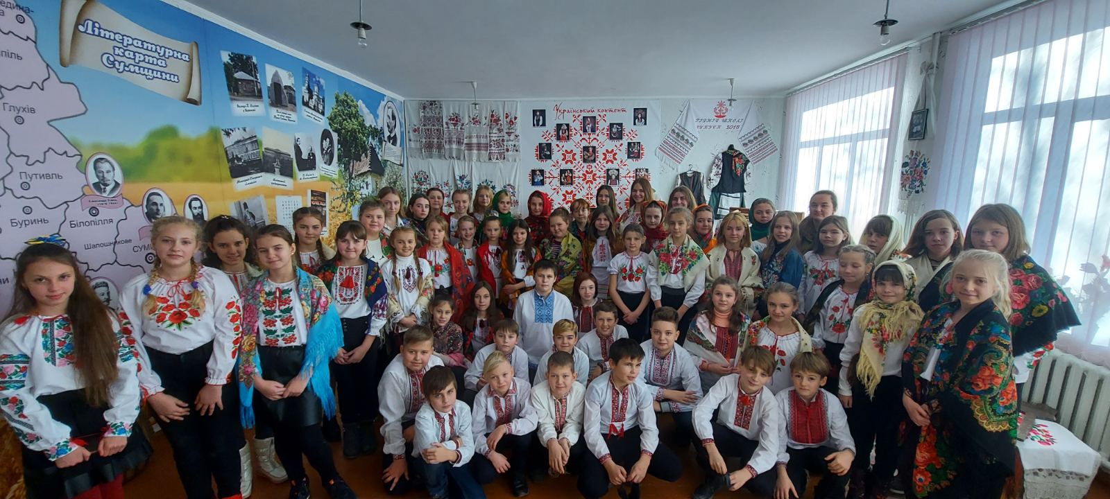 У цей день 4-Г клас (кл. керівник Рибалко Н.М.) писав диктант "Наша мова". Також учні читали вірші улюблених українських поетів. І разом вони зробили яскраву стіннівку для шкільного конкурсу.